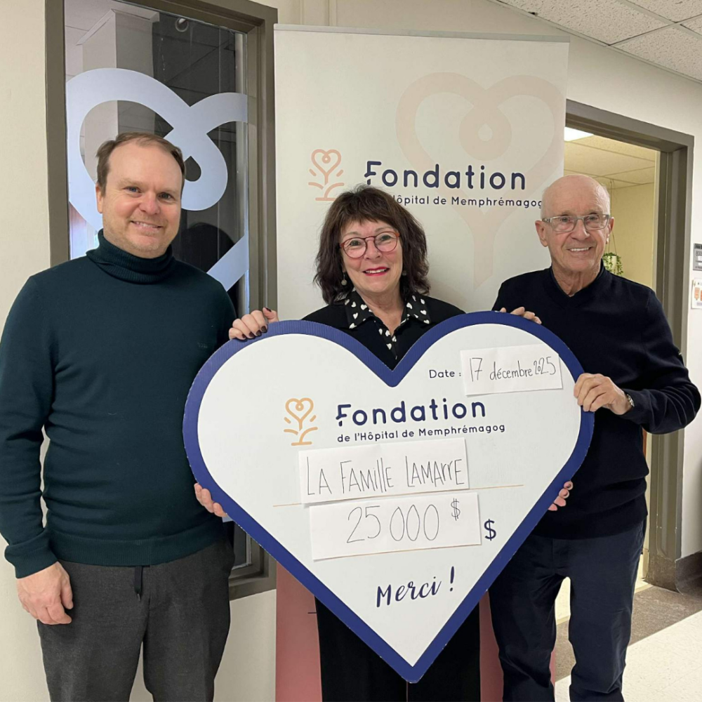 La Fondation de l’Hôpital de Memphrémagog tient à exprimer sa plus sincère reconnaissance envers la Fondation Famille Lamarre pour cette contribution qui fera une réelle différence au cœur de notre hôpital.