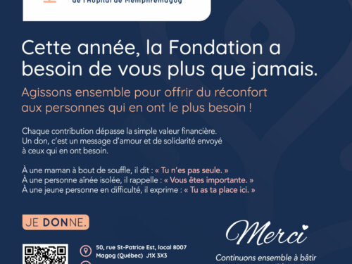 9 Décembre 2025 - Campagne postale 2025 : un appel au cœur et à la solidarité! Depuis le mois de novembre, la Fondation de l’Hôpital de Memphrémagog a donné le coup d’envoi à sa campagne postale 2025. Année après année, c’est grâce à la fidélité et à la générosité de ses donateurs que la Fondation peut poursuivre, avec cœur, sa mission d’appui à l’hôpital et aux…